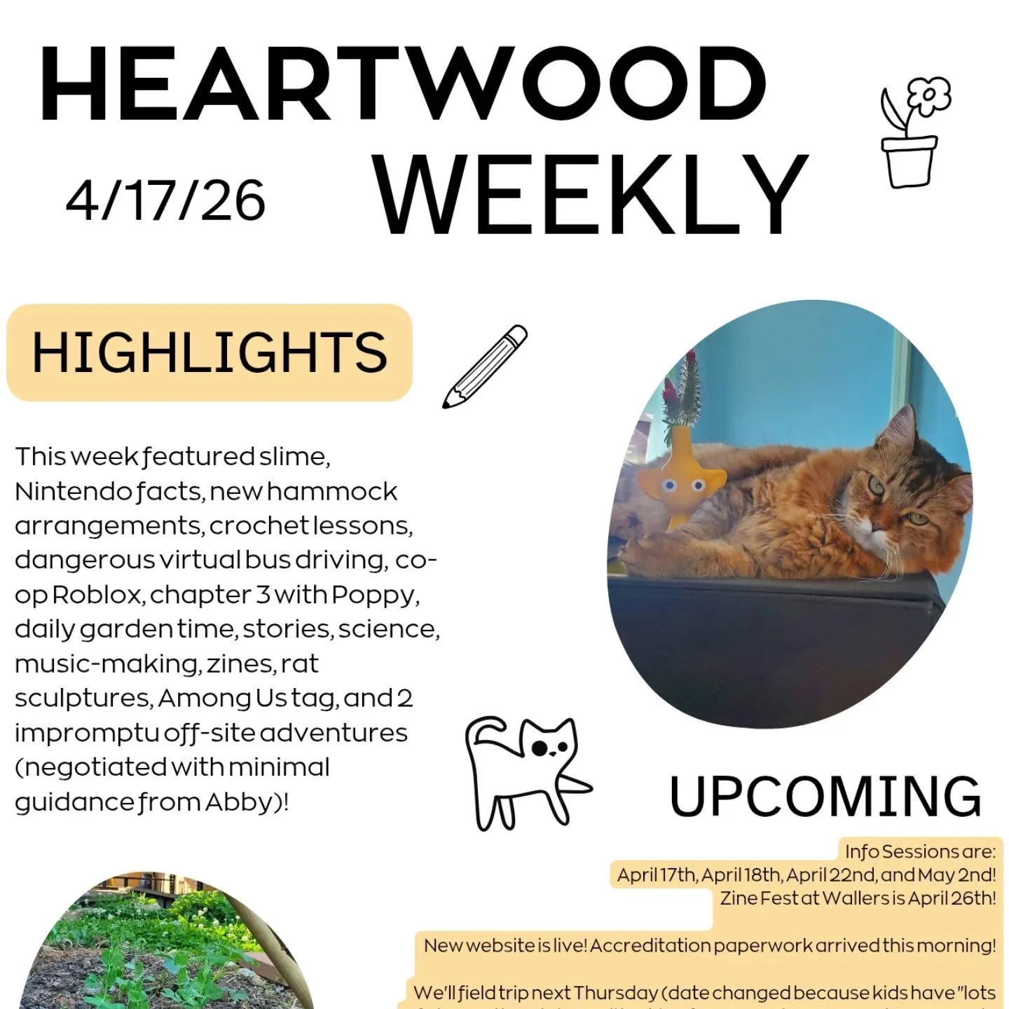 Heartwood is a place where we are always learning: through experimentation, open-inquiries, free play, deliberate skill-building, and social engagement. Our students personalize their experiences by making choices every day, and they build meta-cognition through regular small meetings to reflect on these choices. The community solves real problems together, as we steward and adapt the space continually using co-design practices. We love a project, and we’re always learning new tools. We also welcome silliness and surprises. We share notes about our favorite stories, make cartoons of our rescue cat, and enjoy spontaneous karaoke in our sensory garden. Social and self-expression breakthroughs are celebrated as much as more academic level-ups in our space.